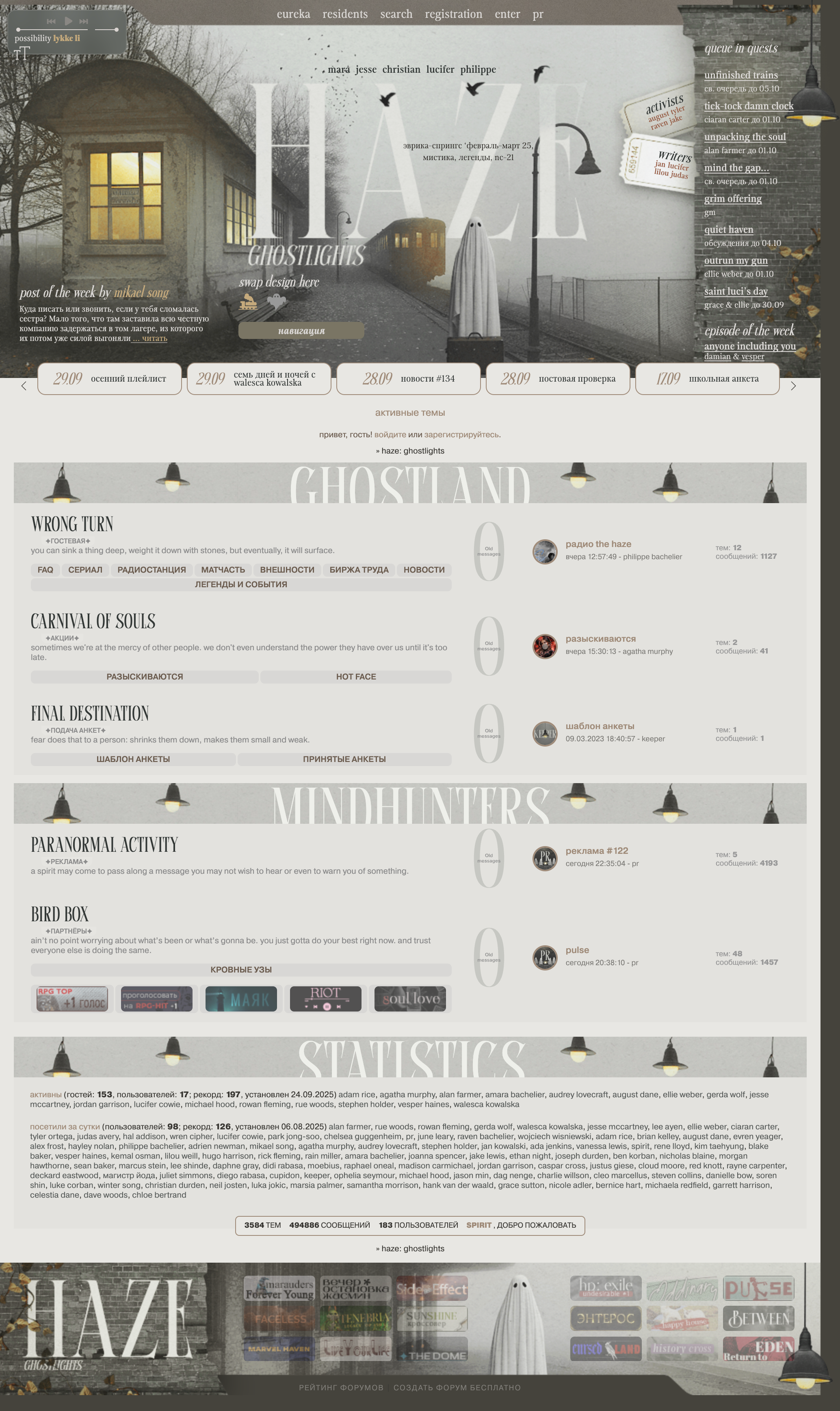 <center>история внешнего вида форума. если что-то хочется изменить/поправить или хотите оставить свой отзыв - пишите в гостевую или диалог с амс. <br><br></center></div></div>[/html]